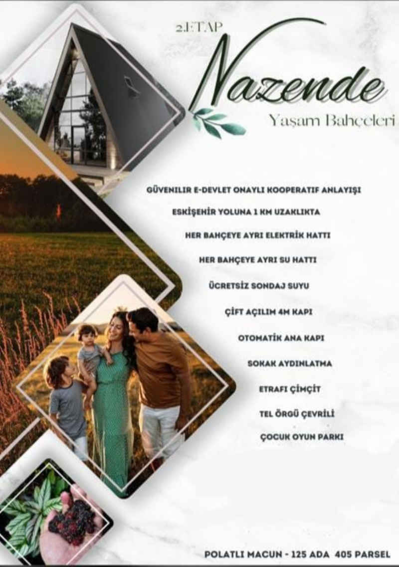 Yatırım Fırsatı.Polatlının gelişen yapısı ve Macun Mahallesinin sunduğu avantajlar, arsamızı geleceğe yönelik kazançlı bir yatırım haline getiriyor. Doğanın içinde, şehrin gürültüsünden uzakta, huzurlu bir yaşamın kapılarını aralarken, aynı zamanda yatırımınızı değerlendirebilirsiniz.